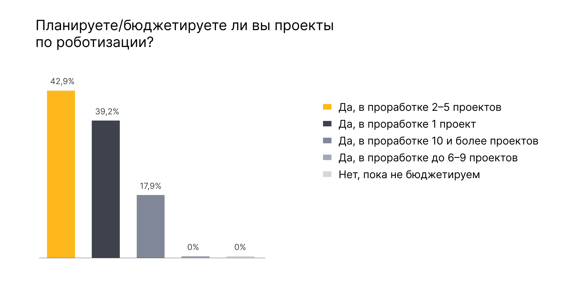 В 2025 г. Яндекс Роботикс и «Промышленная Робототехника» (ex. KUKA) совместно провели опрос среди более 100 представителей среднего и крупного бизнеса из сфер ритейла, e-commerce и логистики, чтобы выяснить, как компании оценивают стратегию внедрения роботизации, и какие строят планы по роботизации на будущее.