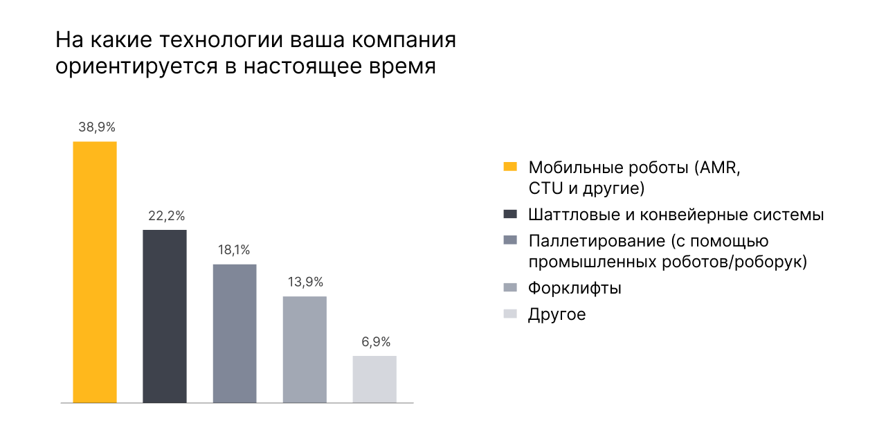 В опросе приняло участие 112 респондентов по всей России, занимающих руководящие должности подразделений и отвечающих за логистику и складское хозяйство, из 51 компании федерального уровня из сфер ритейла, электронной коммерции и логистики.